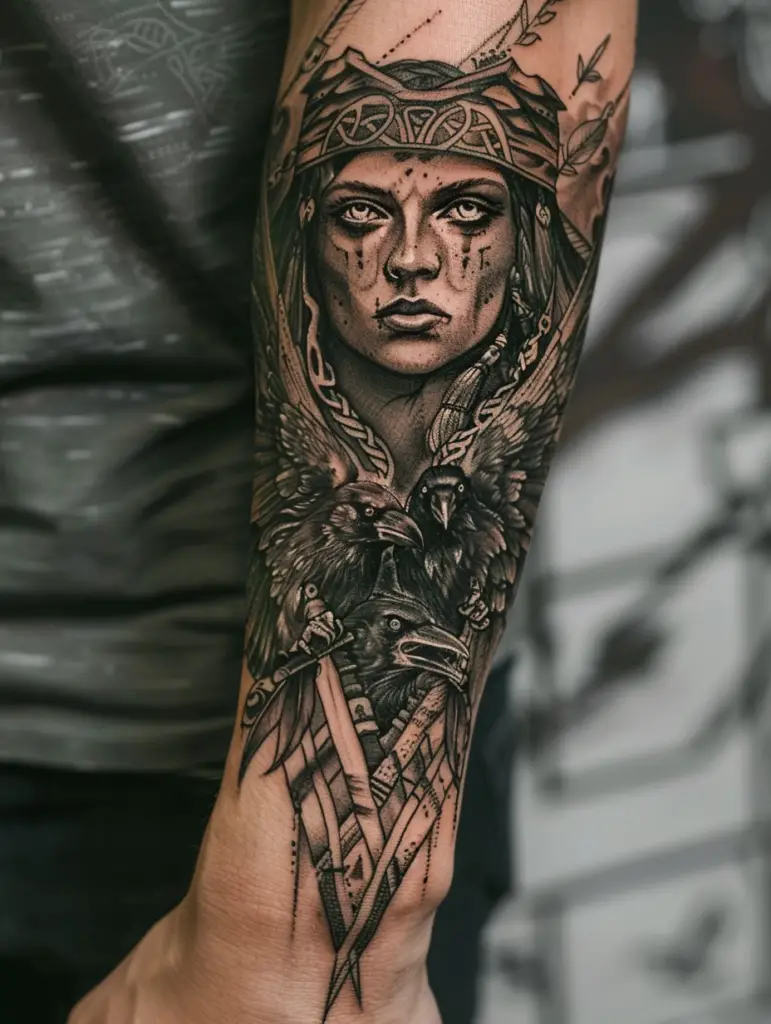 Many women choose to honor their heritage or explore fascinating cultures through their sleeve tattoos.