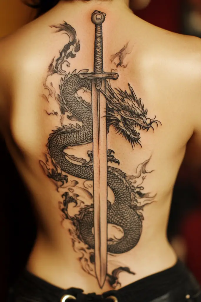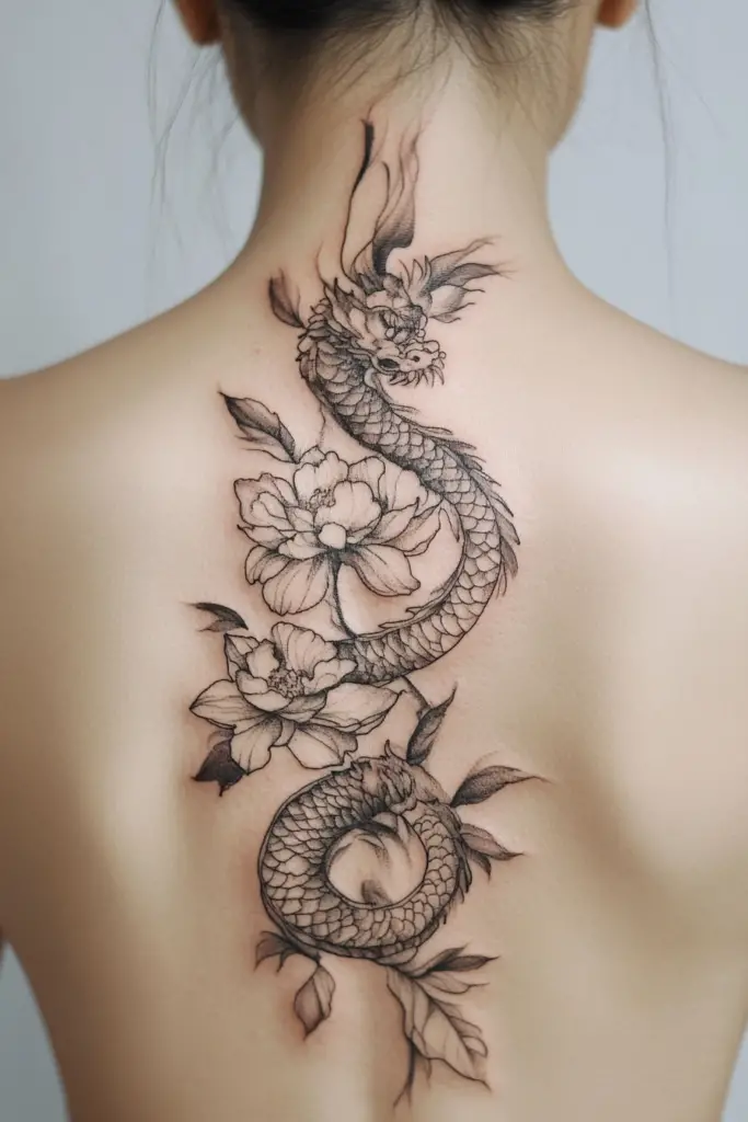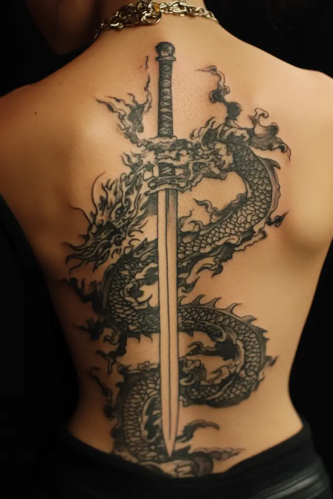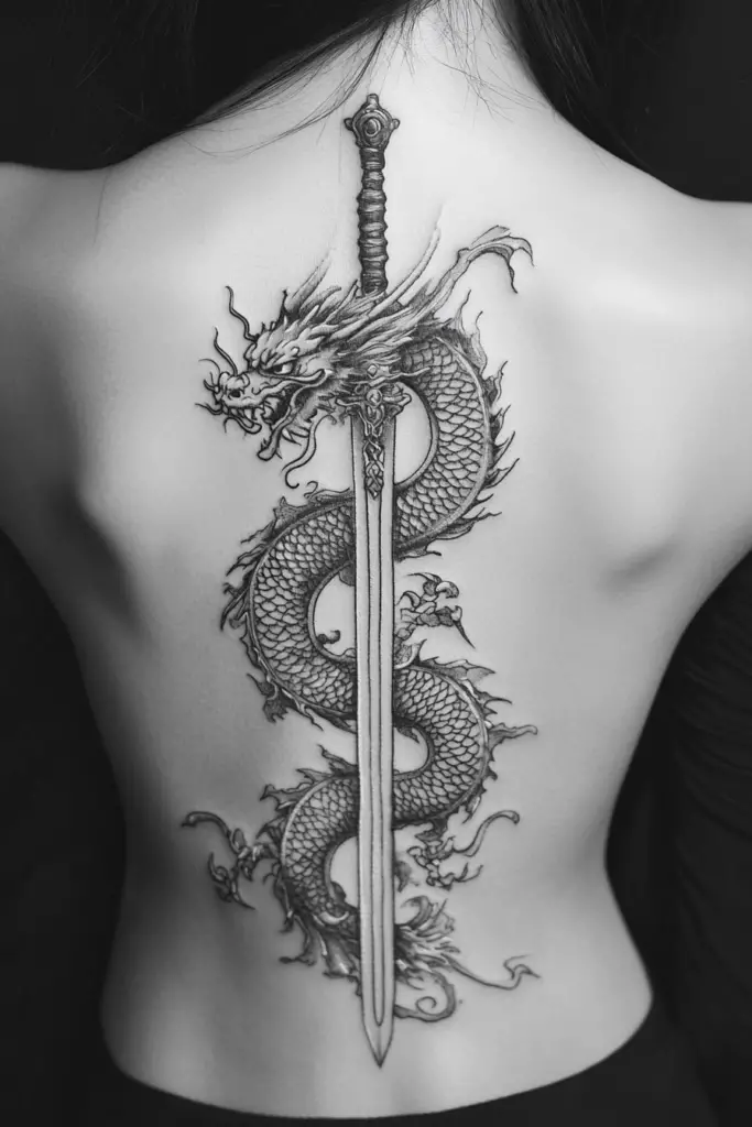 A Chinese dragon tattoo that follows the spine’s curvature can represent the wearer’s backbone in facing life’s challenges, a visual and symbolic representation of perseverance and courage.
