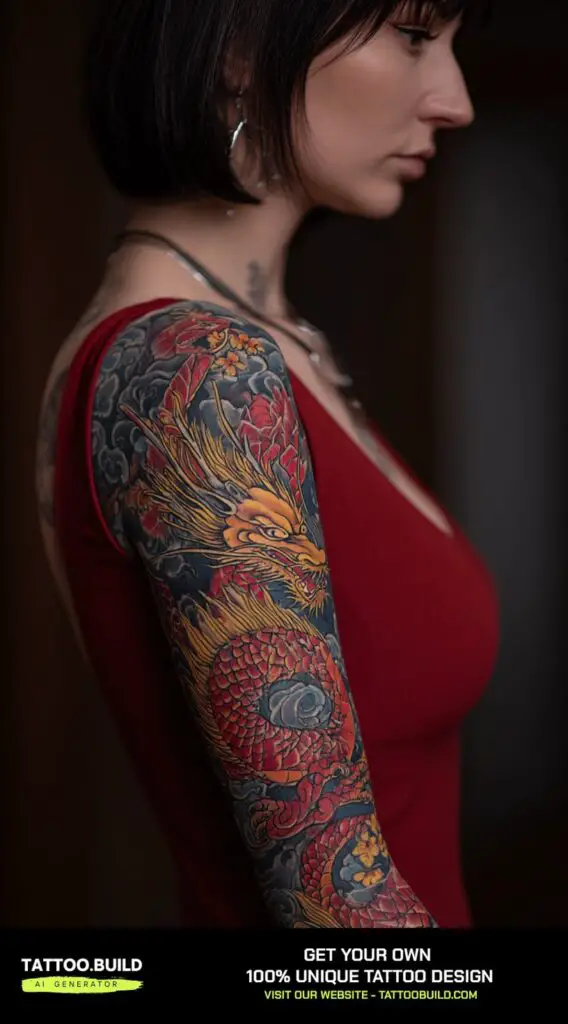 Perfect for women who appreciate bold yet refined imagery, a Japanese dragon sleeve tattoo combines mythology and artistry, creating a powerful statement of resilience and grace.