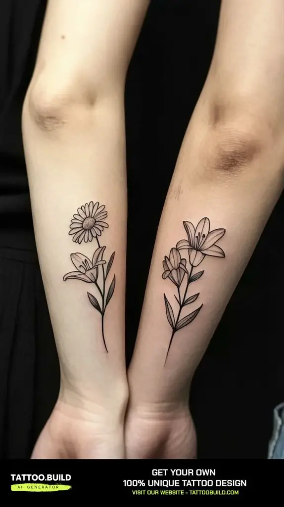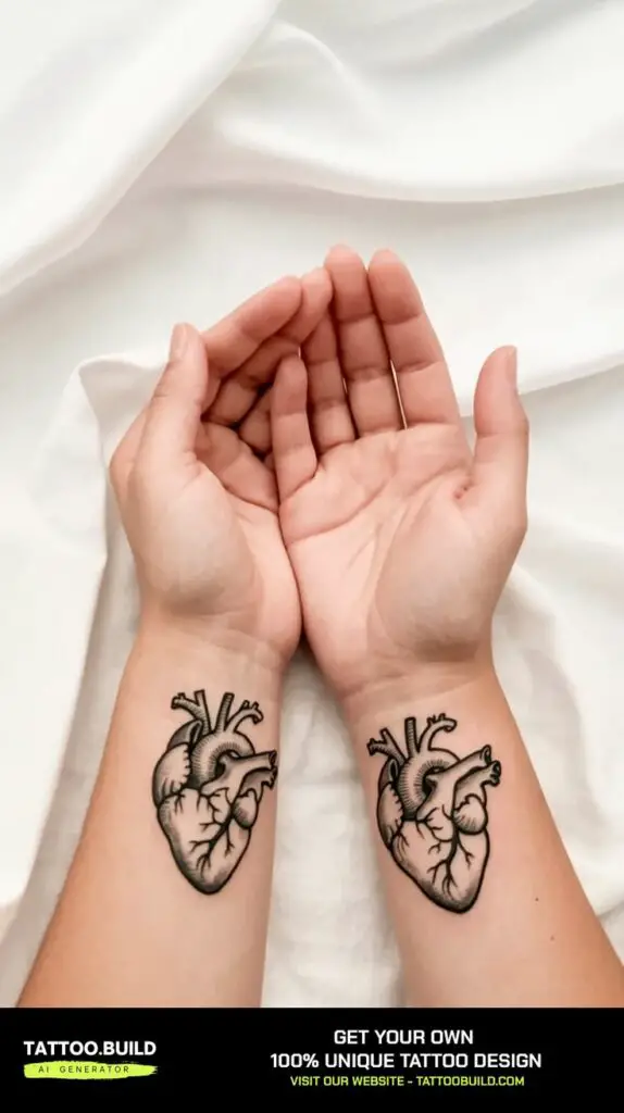 Matching tattoos are often placed in the same spot on each person’s body, which adds a layer of synchronicity. Whether it’s a tiny heart on the wrist or a pair of wings on the back of each shoulder, matching tattoos suggest harmony and partnership. They say, without words, “we’re in this together.”