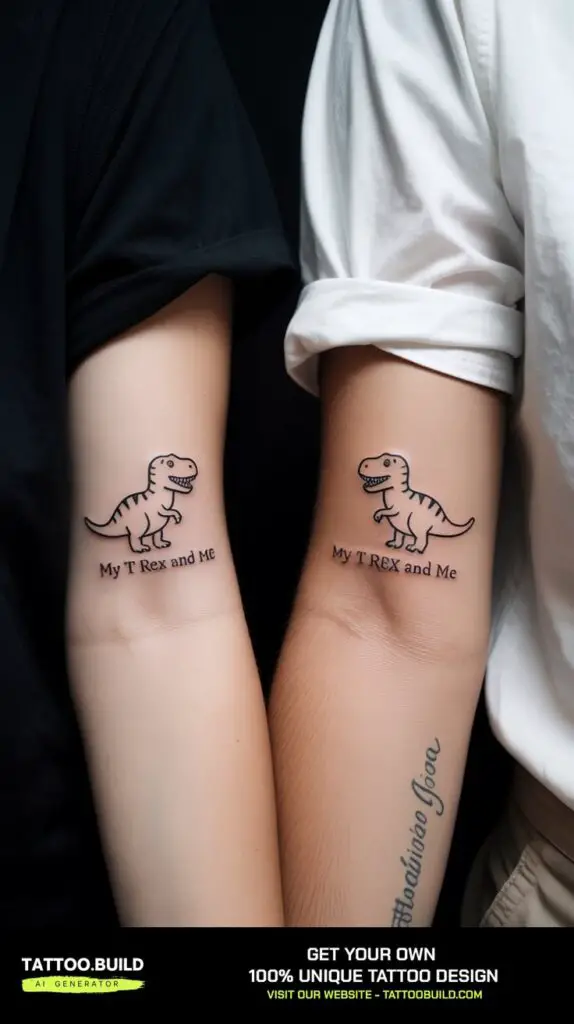 These tattoos are often the ones that make people smile. They show that you’re not afraid to be playful and authentic in your relationship. Whether it’s a slice of pizza and a soda can, or matching dinosaurs wearing sunglasses, funny tattoos capture the unique tone of your partnership.