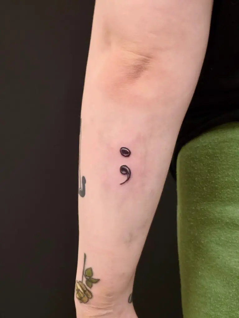 In mental health culture, the semicolon represents a sentence that could have ended but didn’t. Families who have navigated crisis together sometimes choose this symbol as a shared mark of survival. The punctuation reads as minimal. The meaning is anything but.