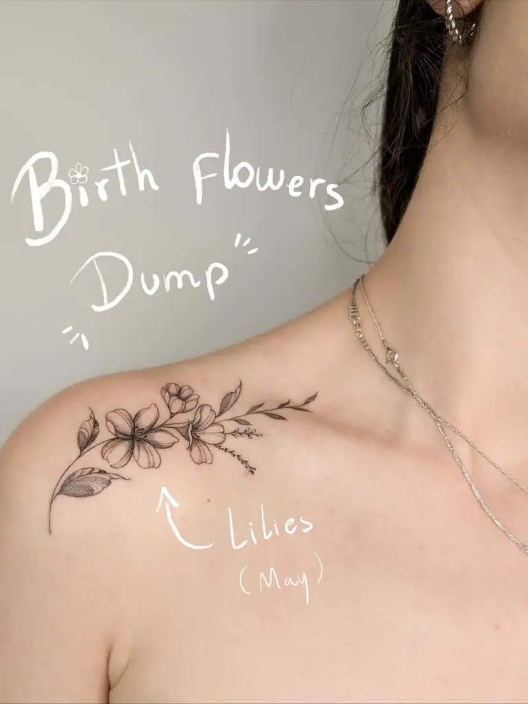 Each month has a corresponding birth flower. A composition of family members’ birth flowers, rendered together in fine line botanical style, creates a family tattoo that’s personal without being literally explicit. It reads as a floral piece to strangers and as a family portrait to people who know.