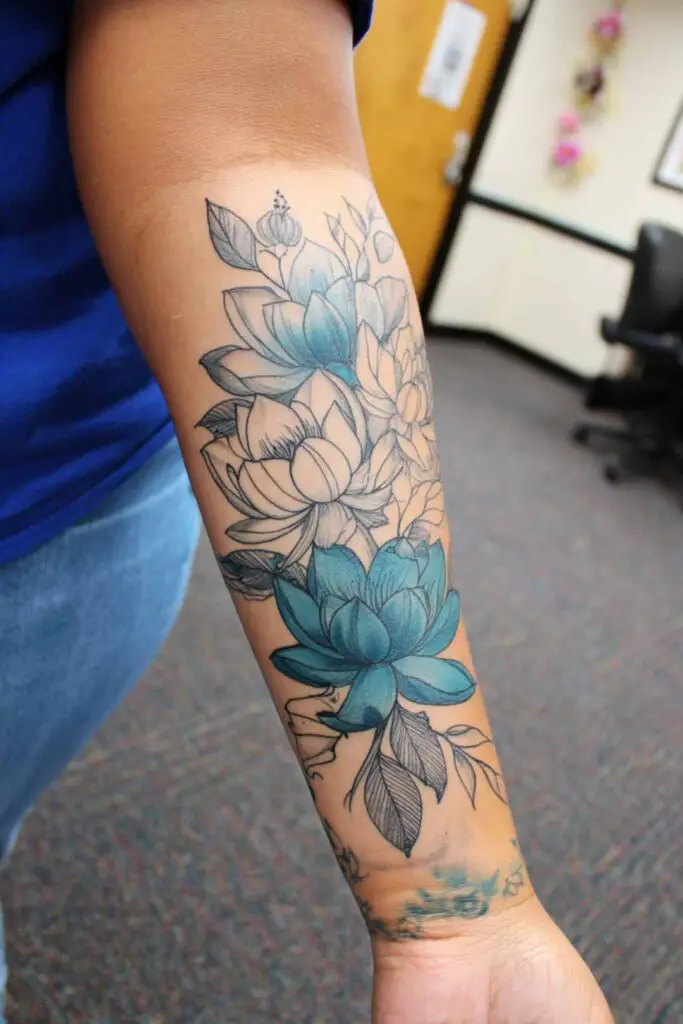 1. A cascading lotus garden wrapping from wrist to elbow