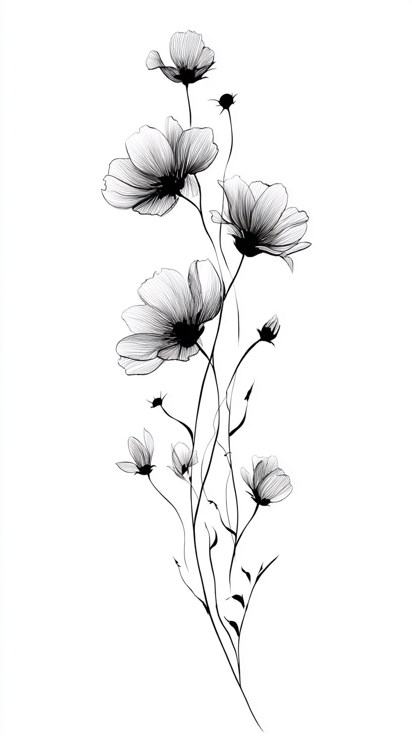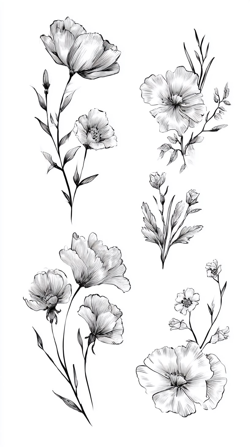 Popular wildflower choices include daisies, poppies, lavender, and forget-me-nots. These simpler blooms work beautifully in fine line styles and minimalist approaches.