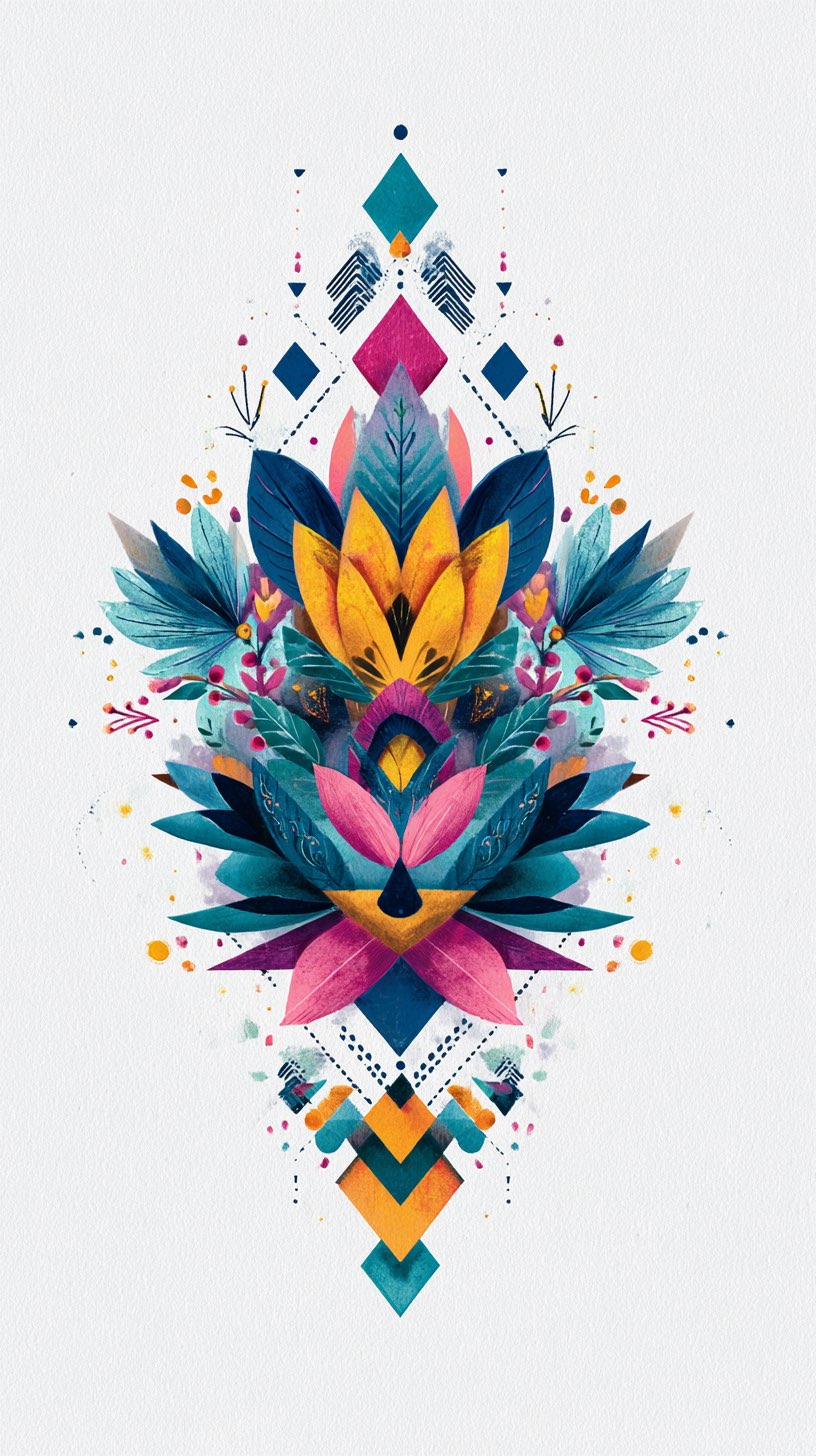 Combining flowers with geometric shapes creates a modern twist on classic botanical art. Hexagons, triangles, and circles frame delicate blooms for a contemporary aesthetic that bridges natural and abstract.