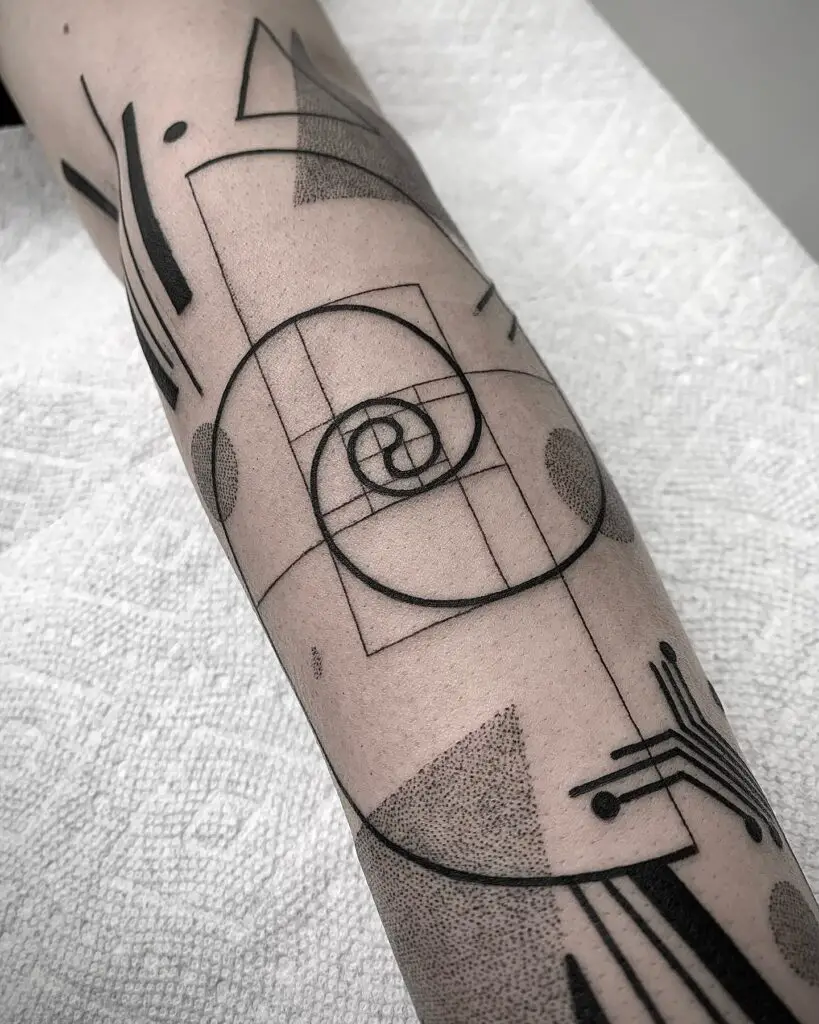 The golden ratio spiral, rendered precisely using the actual mathematical proportions. A design that sits at the intersection of art and mathematics. Particularly effective on the inner forearm where the proportions of the spiral can be fully appreciated.