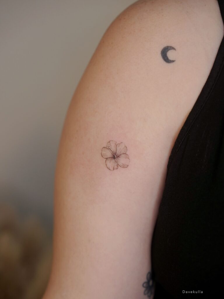 A hibiscus behind the ear or in the hair in the Hawaiian and Pacific tradition. Not the literal placement but the implied one: a hibiscus tattoo behind the ear that references the cultural practice of wearing the flower in hair. Intimate, small, and culturally specific.