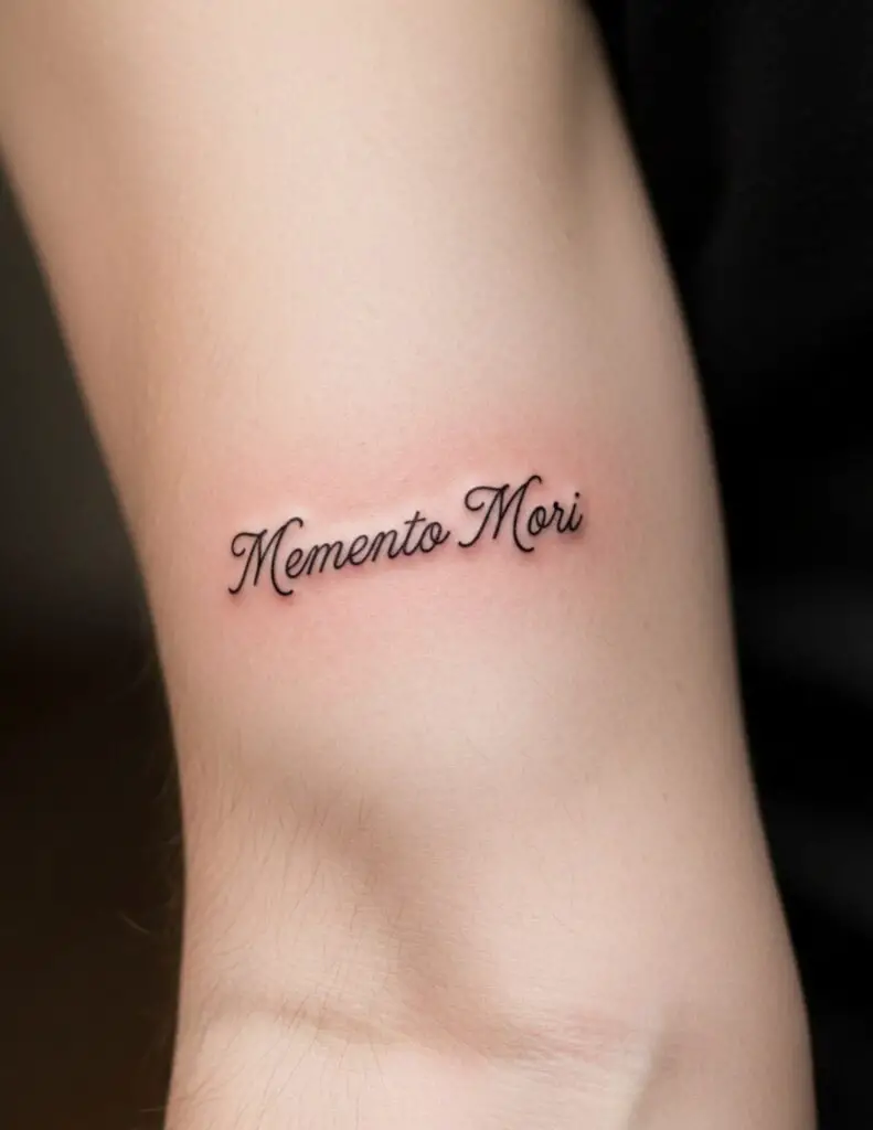 “Remember that you will die.” From the Stoic tradition. The phrase is not morbid but clarifying: the awareness of death as the tool for focusing on what actually matters. One of the most tattooed Latin phrases because its message is both universal and direct. Works in small script or paired with a skull or hourglass.