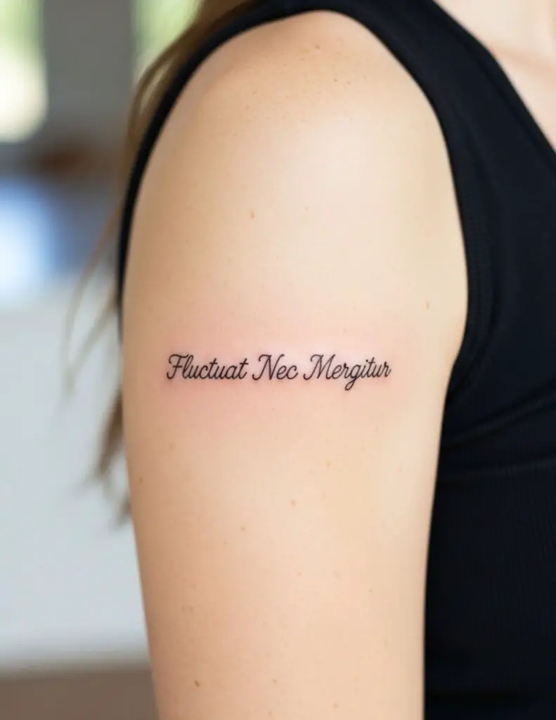 “She is tossed by the waves but does not sink.” The motto of Paris, showing a ship on a stormy sea. The phrase is about resilience in difficulty: the waves do not stop, but neither does the person. One of the more beautiful Latin phrases for a resilience tattoo.