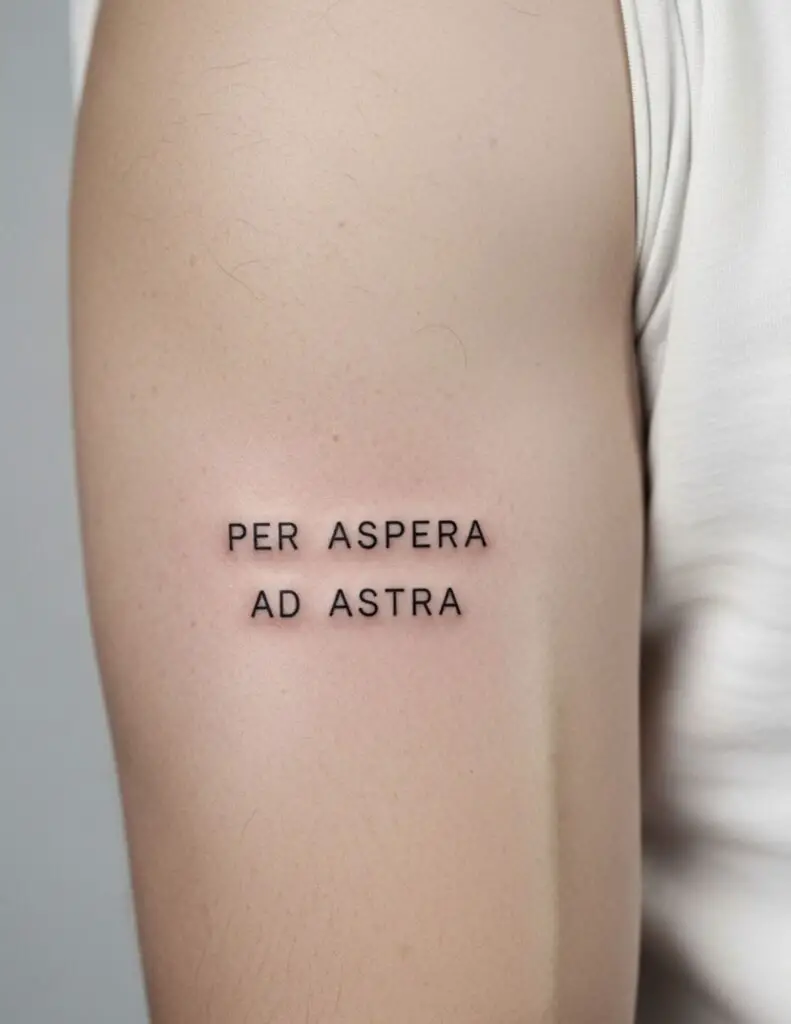 “Through hardship to the stars.” The Kansas state motto and one of the most resonant Latin phrases about perseverance. The image of moving through difficulty toward something vast and bright. Often combined with star or constellation imagery.