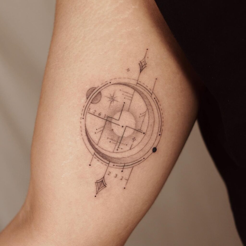 This style demands a highly skilled tattoo artist with experience in realism, so researching portfolios carefully is important. Placement on the upper arm, thigh, or back gives the artist the space needed to render the detail properly. The result is one of the most awe-inspiring moon tattoo ideas you can commission.