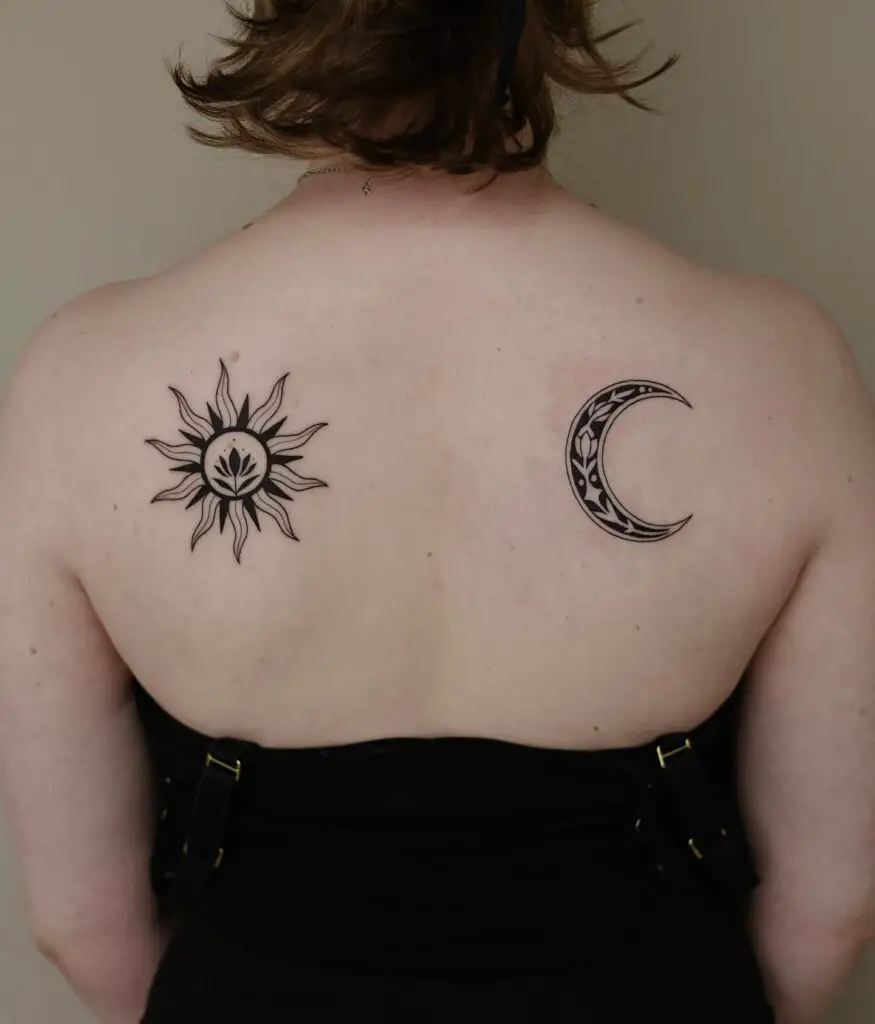 Pairing the sun and moon in a single tattoo creates a powerful symbol of balance, duality, and the harmony between opposites. The two celestial bodies can be depicted side by side, intertwined, or even merged into a single half-and-half design.