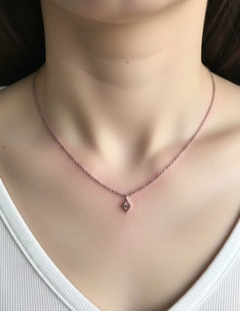 A clean single strand following the collarbone with one prominent pendant: a cross, a key, an initial, or a significant symbol. The simplicity of one strand and one pendant creates maximum focus on the pendant’s meaning rather than the decorative complexity of the chain.