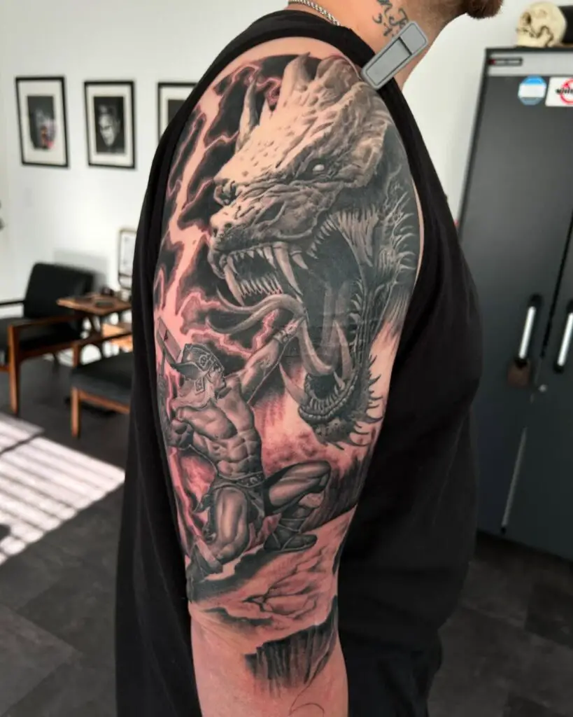 Norse mythology is not decorative. It is a cosmology built around conflict, honour, sacrifice, and the inevitability of Ragnarok. The gods in this tradition are not omnipotent and infallible. They are powerful, flawed, and mortal in the long run. That tension gives Norse mythology a rawness that other traditions sometimes lack. And it makes the symbology extraordinarily rich for tattooing.