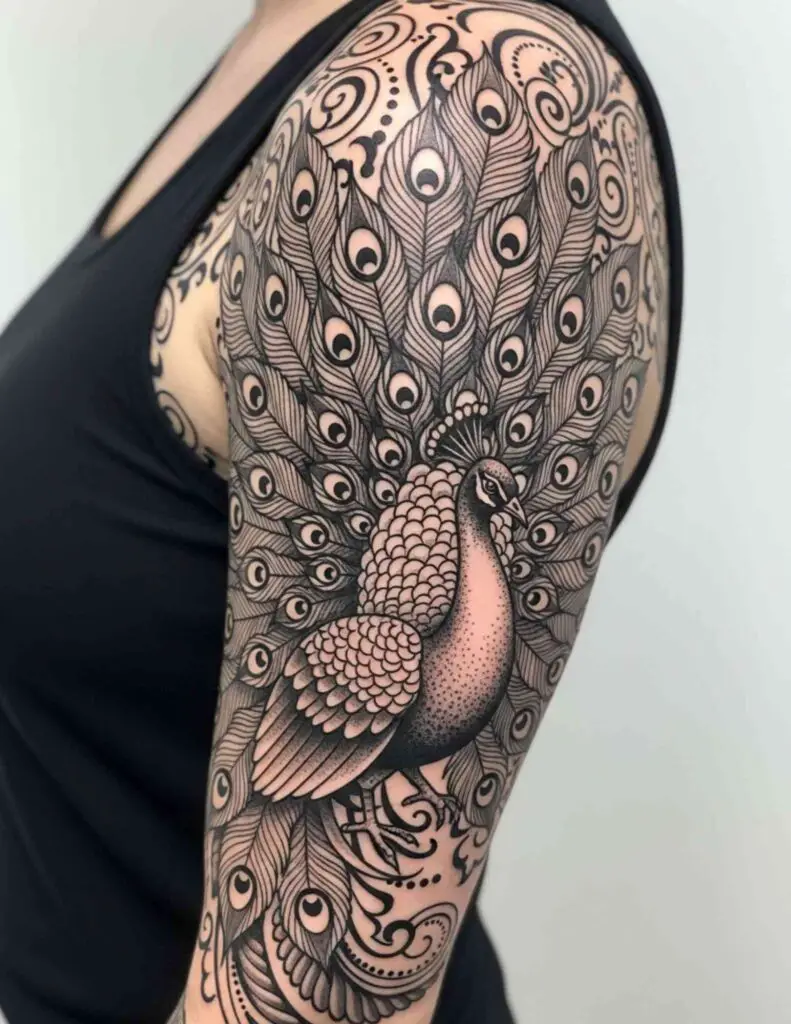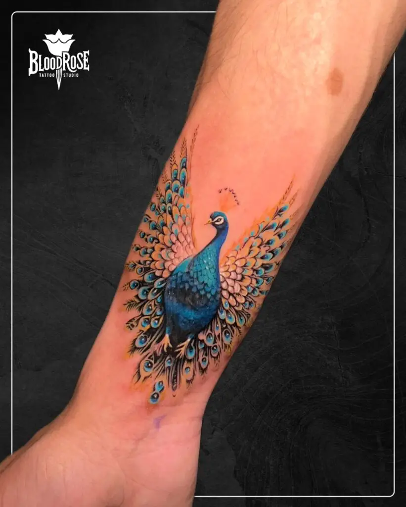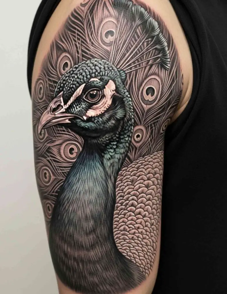 Peacock tattoos live or die on the quality of the colour work. The iridescent blues and greens that define the bird are difficult to achieve in tattoo ink: the colour needs to shift and have depth rather than lying flat. Find an artist with a specific track record in colour realism and ask to see healed peacock or bird work before committing. The difference between a mediocre and excellent peacock tattoo is almost entirely in the colour quality.