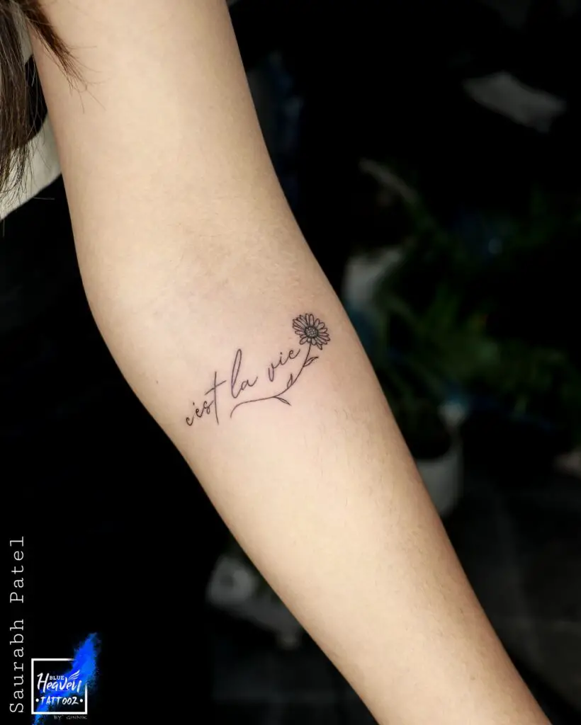French lends itself beautifully to tattoos — it’s lyrical, romantic, and visually elegant. “C’est la vie” (that’s life) is a breezy acknowledgement that not everything can be controlled. “Toujours” (always) is a single word loaded with romantic permanence. “La vie est belle” (life is beautiful) is both declaration and gratitude.