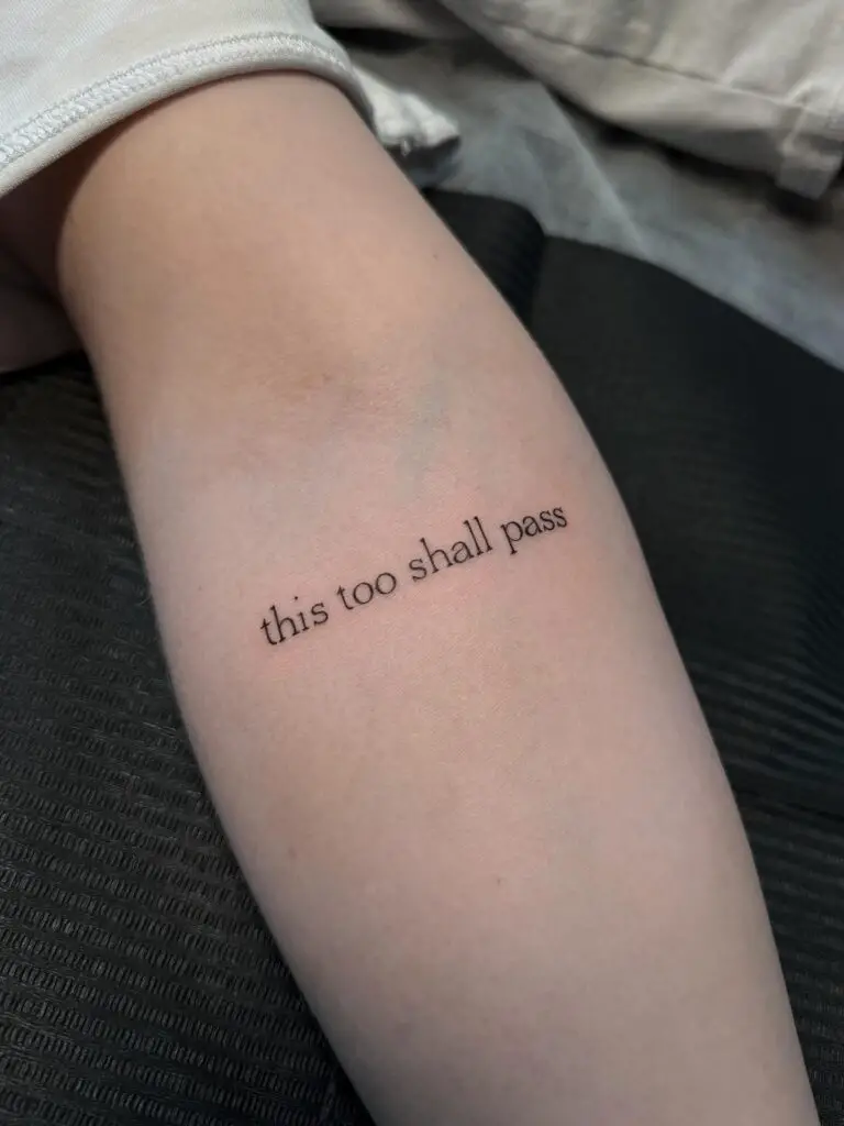 Ancient in origin and timeless in meaning, “this too shall pass” is a reminder that no state — good or bad — is permanent. For women who’ve navigated grief, anxiety, or periods of deep uncertainty, this phrase on the skin serves as a gentle anchor during turbulent times.