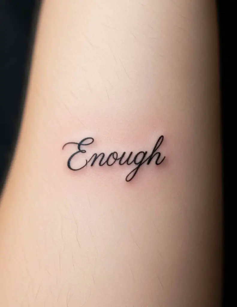 Sometimes one word says everything. “Enough” — as a tattoo — is a radical act of self-acceptance. It pushes back against the voice that tells you that you’re not smart enough, not pretty enough, not successful enough. It’s a declaration: I am enough, exactly as I am, right now.