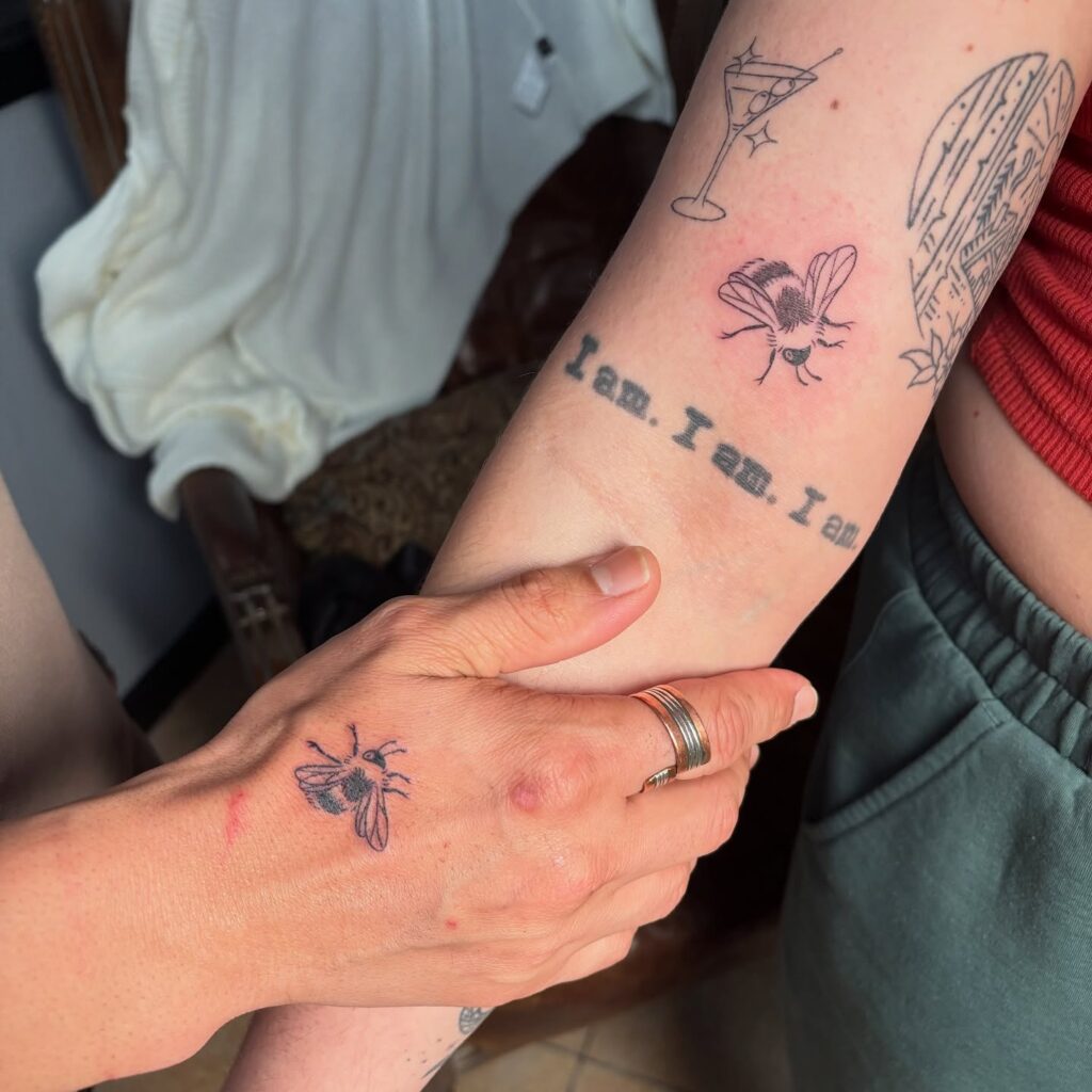 It’s especially popular in minimalist fine-line script, often placed on the inner wrist or behind the ear where it remains personal and intimate rather than showy. The power is in its quietness.