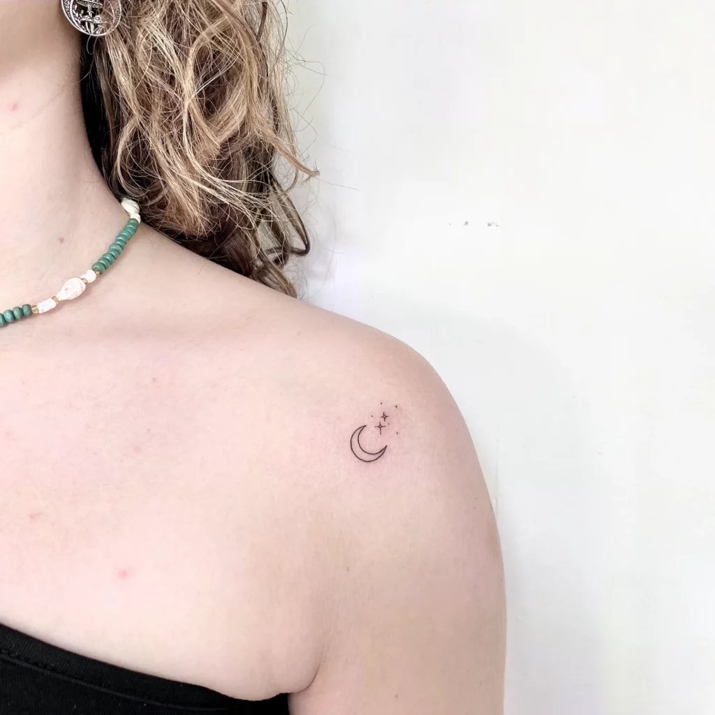 Combine a delicate crescent moon with a few tiny stars for a celestial design that feels dreamy and quietly magical. This composition works beautifully on the collarbone, inner wrist, or behind the ear. The pairing of moon and stars has captivated people across cultures for centuries, making it perpetually and genuinely elegant.