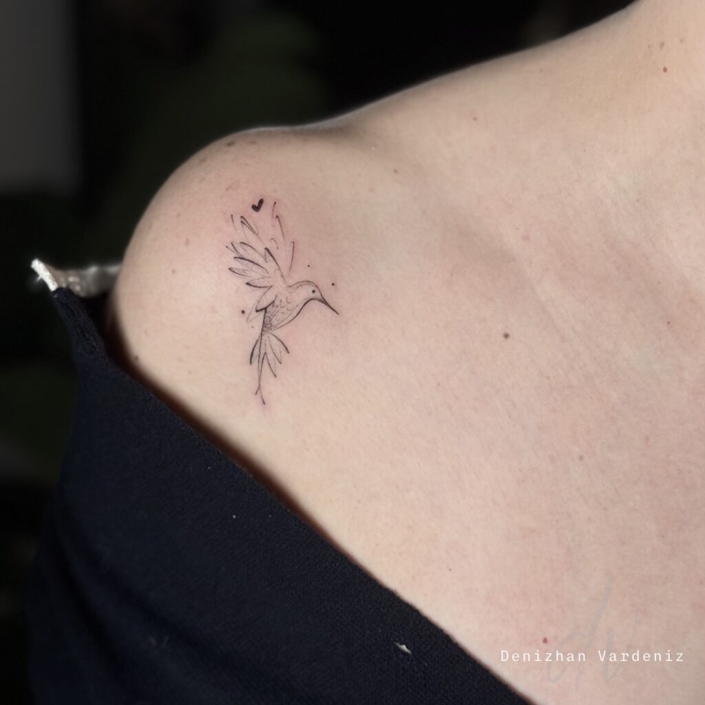 A tiny hummingbird outline represents joy, resilience, and living life to the fullest with intention and grace. This delicate creature renders beautifully in fine lines and works wonderfully as a small tattoo on the shoulder, wrist, or collarbone. The hummingbird’s association with lightness and joy makes it a perfect choice for those seeking uplifting symbolism.