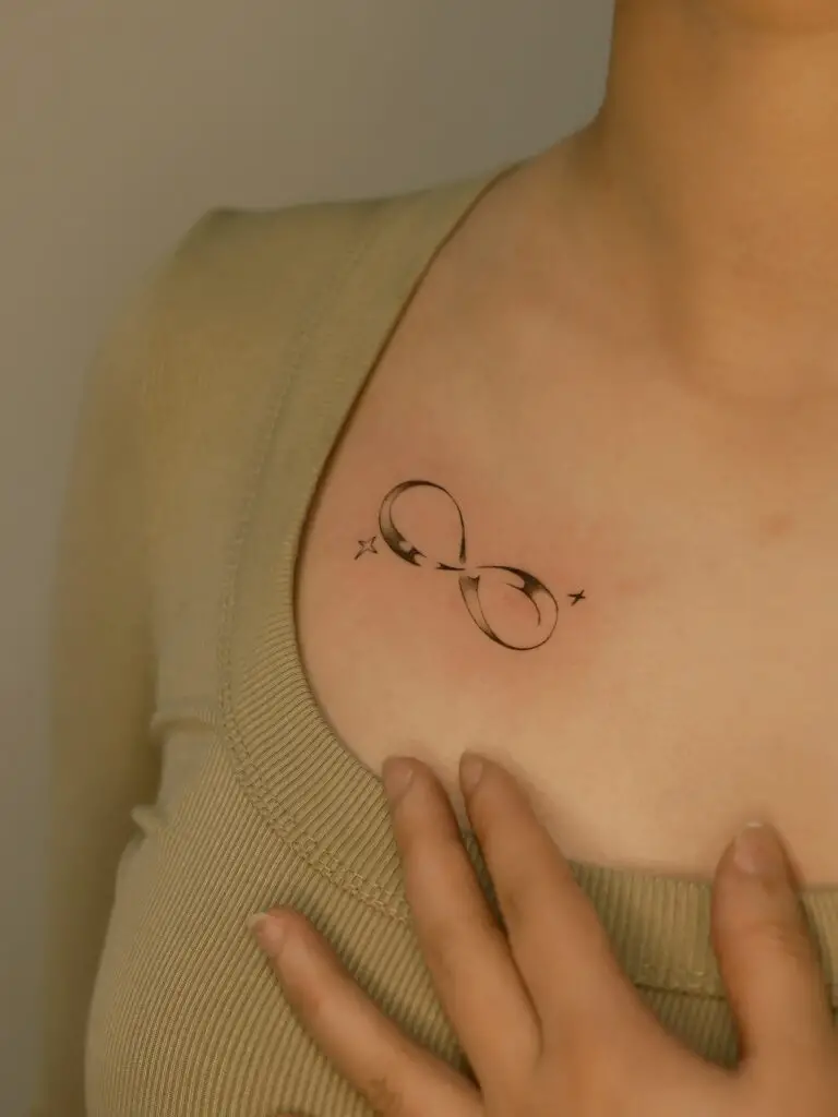 An infinity symbol represents eternity, endless possibilities, and boundless love or connection. To make it more personal, incorporate a small detail like a flower, heart, or name woven into one of the loops. This variation maintains the elegance of the classic symbol while adding a layer of individual meaning.