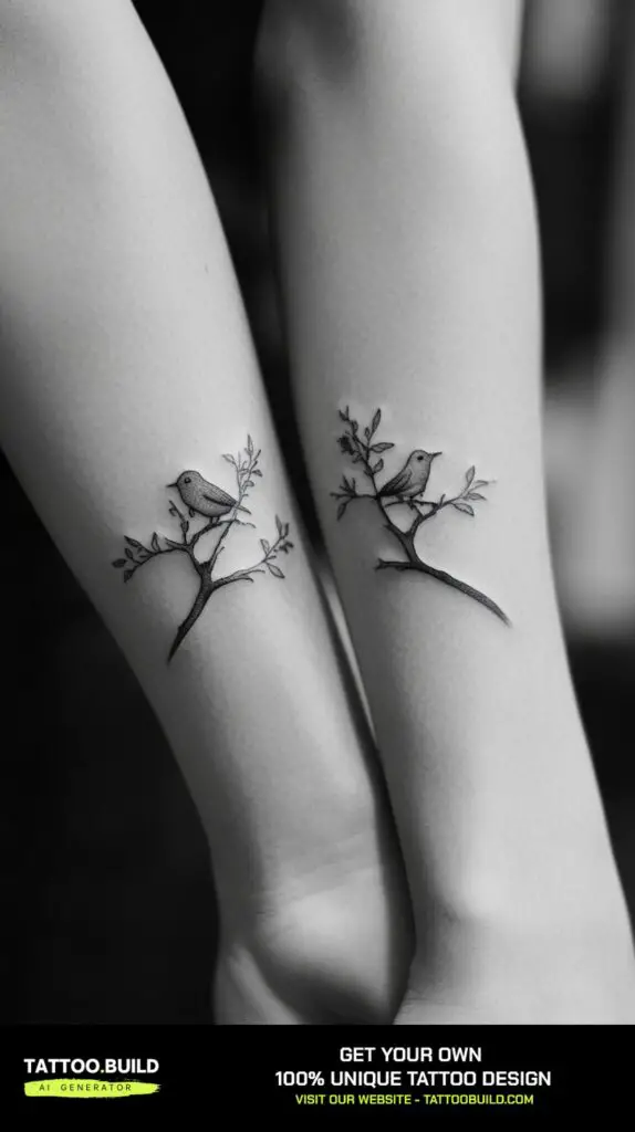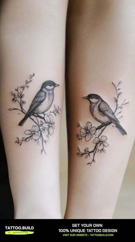 This matching tattoo set of birds perched on blooming branches exudes elegance and harmony. Birds symbolize freedom, and adding floral branches brings an element of growth and renewal. These tattoos are perfect for best friends who see each other as a source of peace and inspiration.