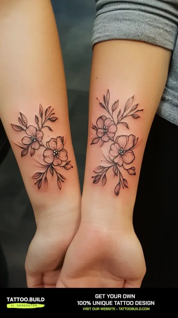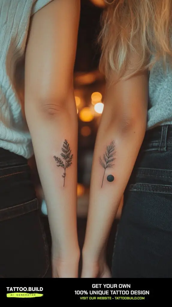 The minimalistic approach adds a touch of grace to the design, making it ideal for those who appreciate refined, understated beauty. Placed on the wrist or forearm, these tattoos remind friends of their shared appreciation for nature and life’s delicate moments.