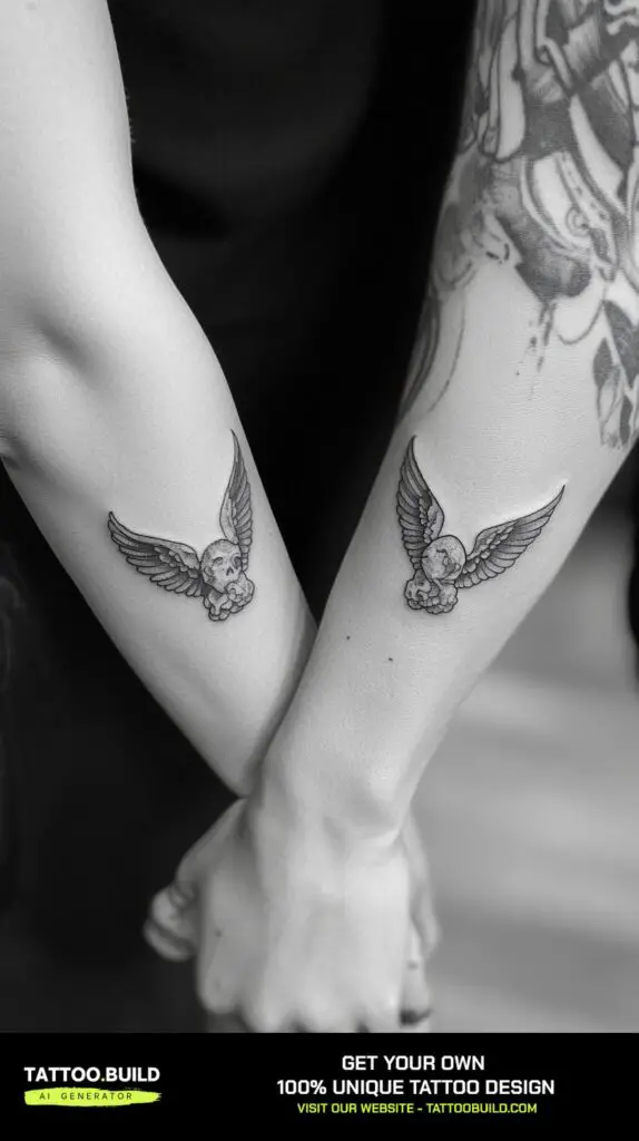 For best friends with a bit of an edge, these winged skull tattoos are both unique and striking. They symbolize freedom and resilience, making them ideal for friends who have faced challenges together and come out stronger.