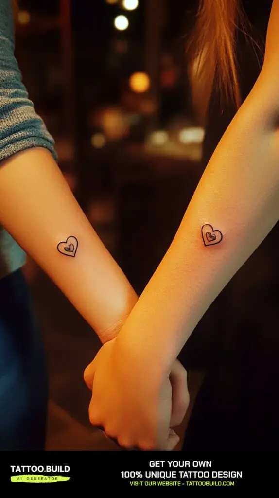 This tiny heart tattoo with initials adds a personal touch to the classic heart symbol. Perfect for best friends who want a minimalistic yet meaningful design, this tattoo captures loyalty and love in a small, impactful way.