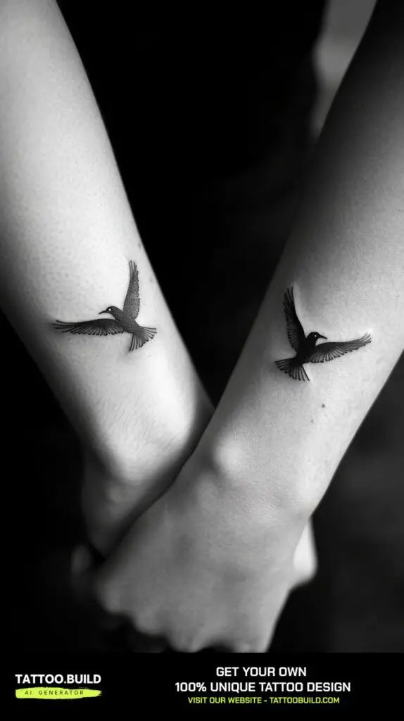 The tattoo’s minimalism makes it a great choice for those who prefer a discreet design with deep meaning. Placed on the forearm, these tattoos remind best friends of their mutual support and the freedom they find in each other’s presence.