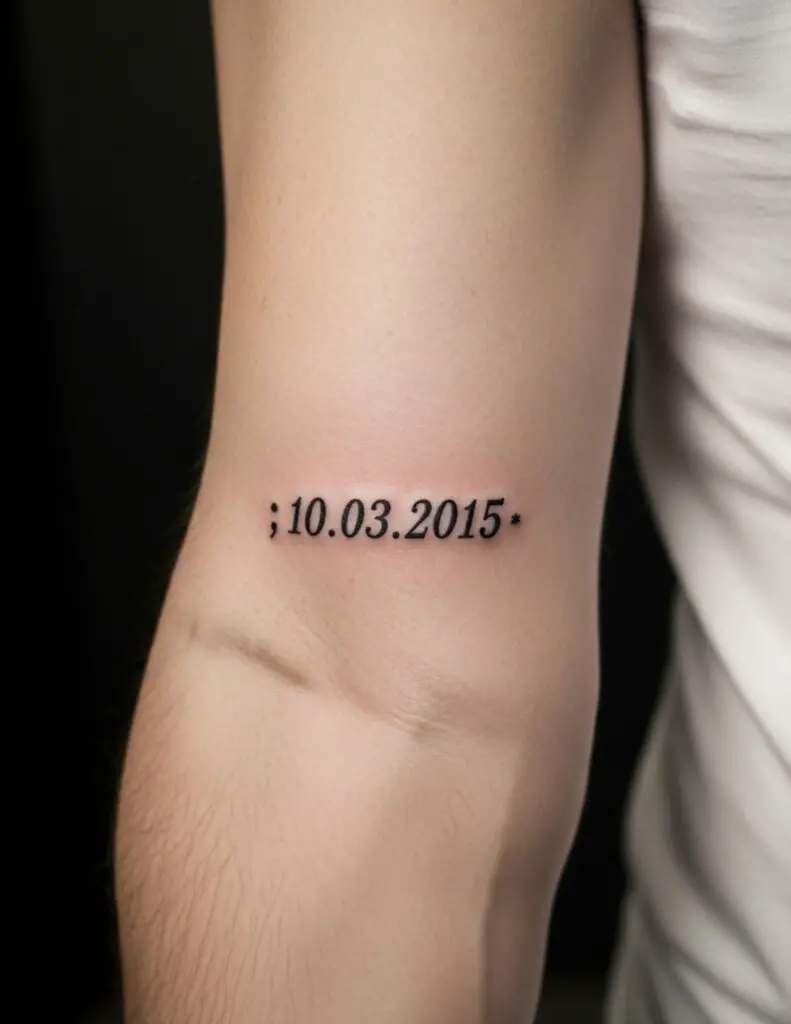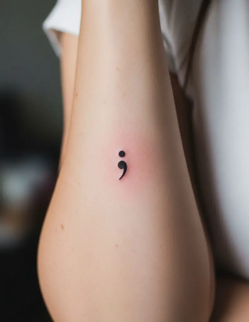 A semicolon: the sentence that could have ended but did not. For people whose recovery included the darkest periods, the semicolon is the mark of continuation: the choice to keep going when the alternative was available and considered. Small, precise, and carrying its entire meaning in one punctuation mark.