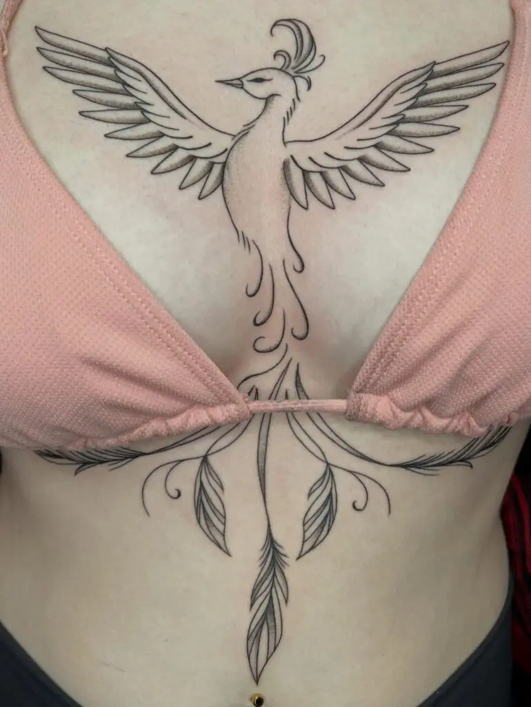 14. Phoenix Sternum Tattoo