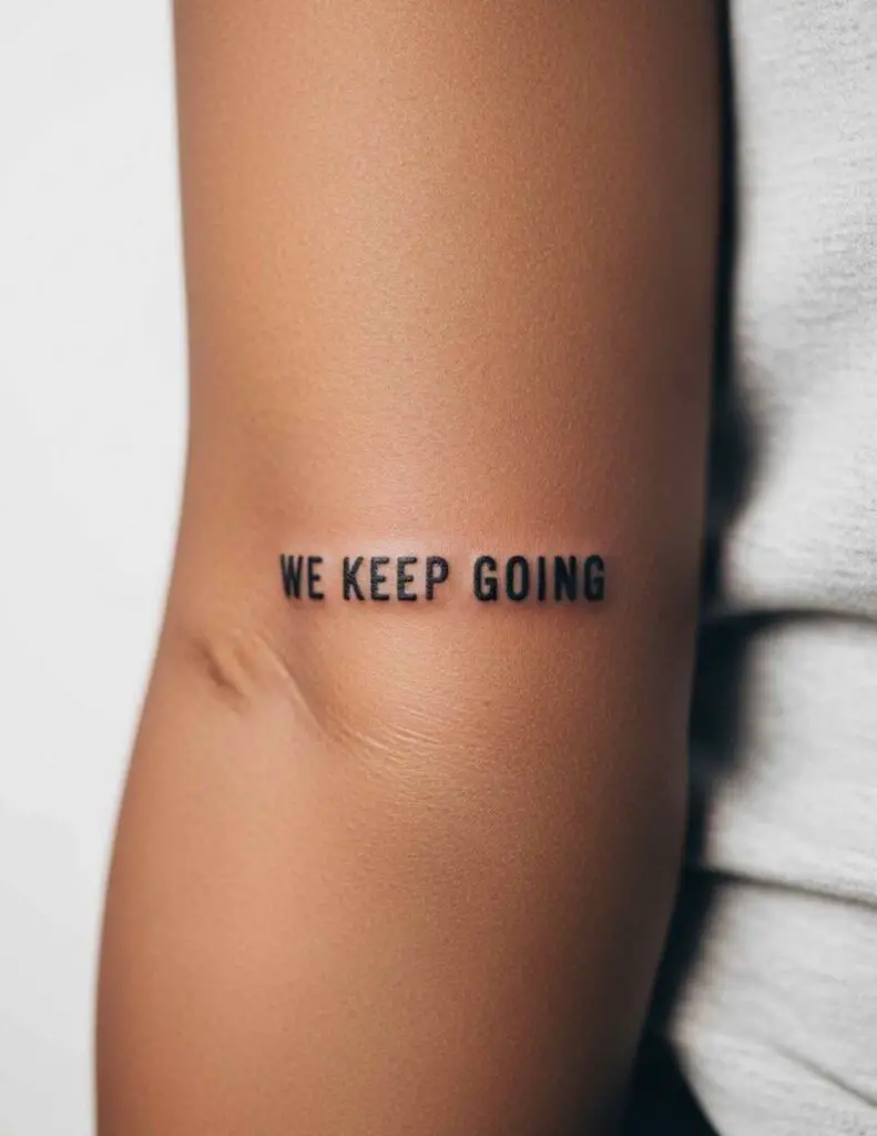 Text in bold, well-spaced lettering rather than delicate script. On dark skin, fine script can lose legibility as the ink spreads slightly with healing. Bold block lettering, gothic blackletter, or well-executed calligraphy with confident strokes holds its readability over time.
