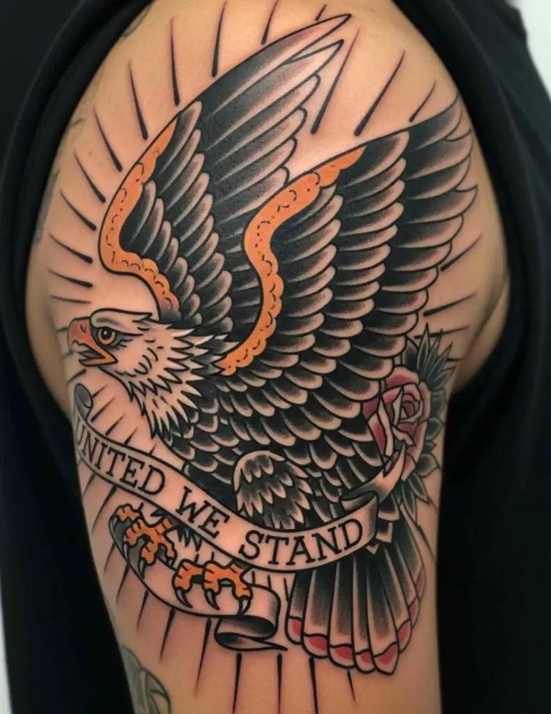 American traditional tattooing with its heavy black outlines and saturated colour blocks was built on bold contrast. The thick black outlines hold clearly on dark skin, and the saturated colours, particularly deep reds, purples, and blues, read well against dark complexions.