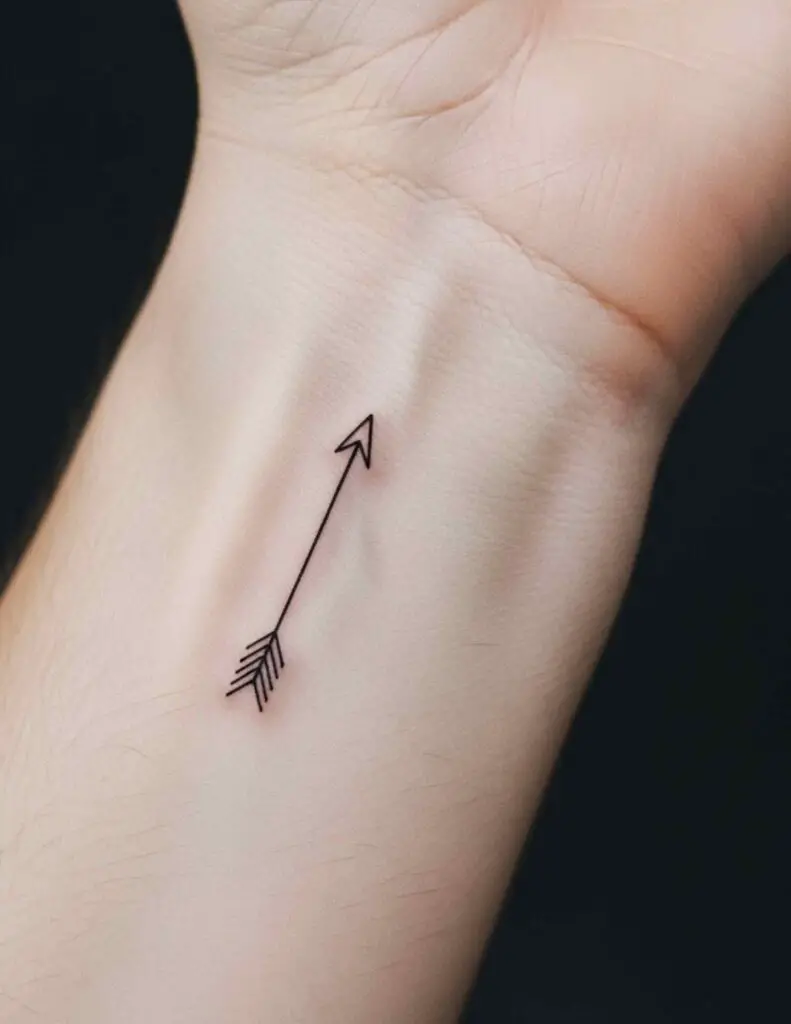 A tiny arrow pointing forward or upward on the inner wrist. The arrow’s associations with direction and intentional movement suit this visibility of the inner wrist. Forward. That way.