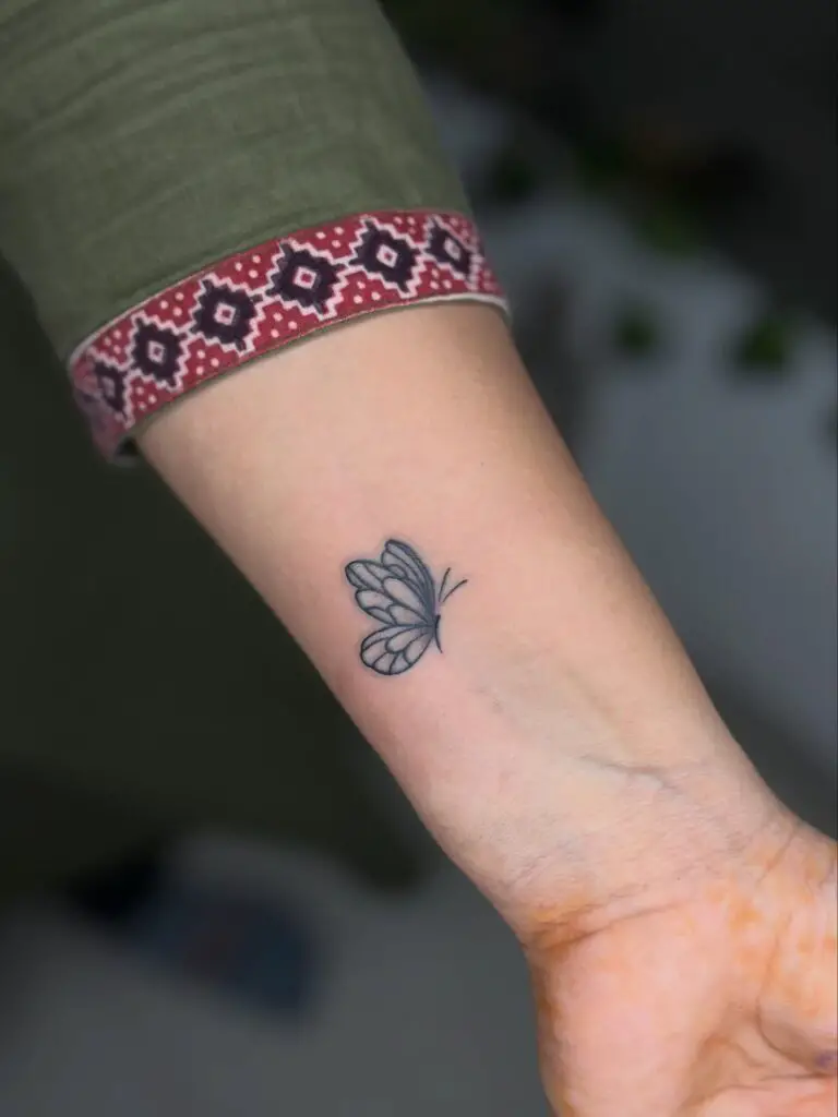 A small butterfly in fine line or minimal colour. At wrist scale, the butterfly’s wings can still be rendered with some detail if the artist specialises in micro work. The butterfly’s associations with transformation suit a placement where the tattoo is seen constantly.