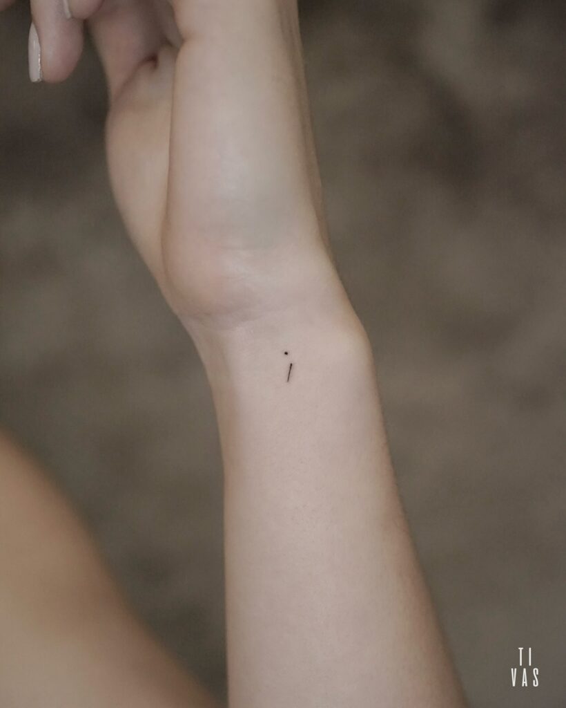 A small semicolon mark on the inner wrist. The semicolon in tattoo culture carries a specific meaning: a sentence that could have ended but did not. For women who have been through something serious and come out of it, this small mark on the inner wrist is the most precise possible statement.