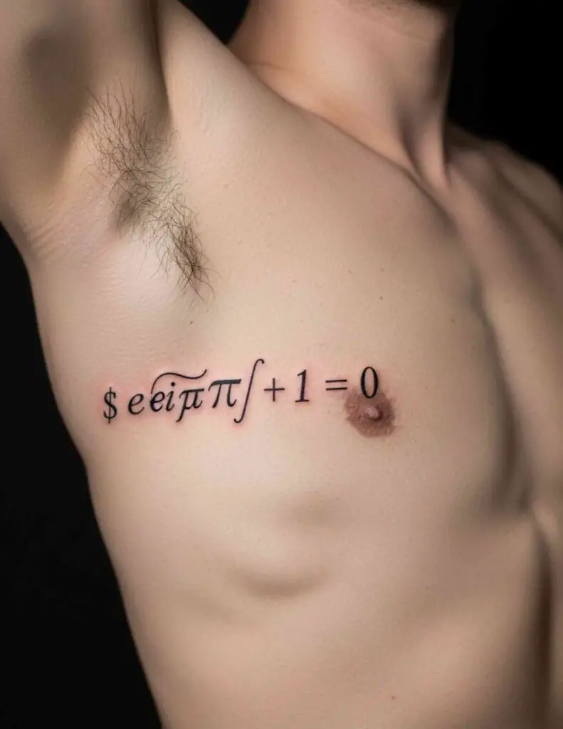 Not a decorative formula. An actual proof or equation that is meaningful to you: Euler’s identity, the Schrodinger equation, a theorem in your field. For people who find beauty in mathematics, carrying a specific equation is a form of intellectual tattooing that has its own austere elegance.
