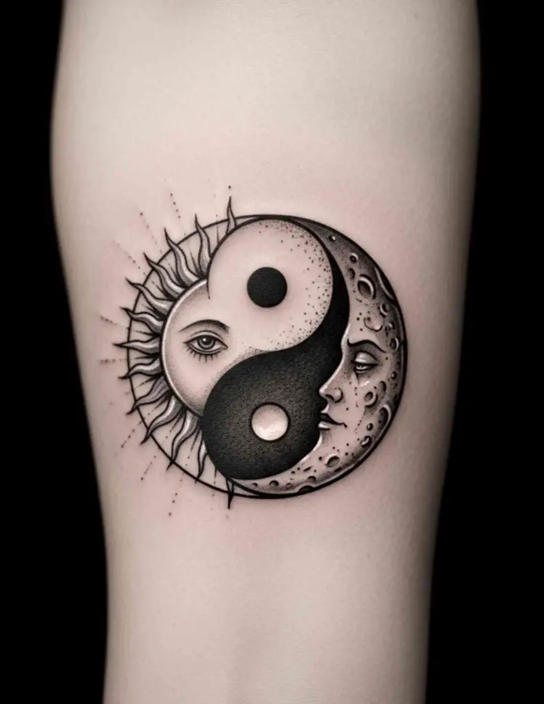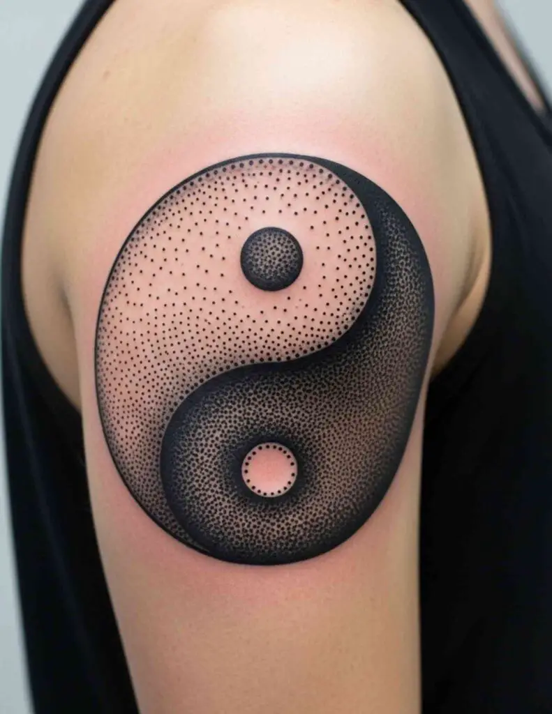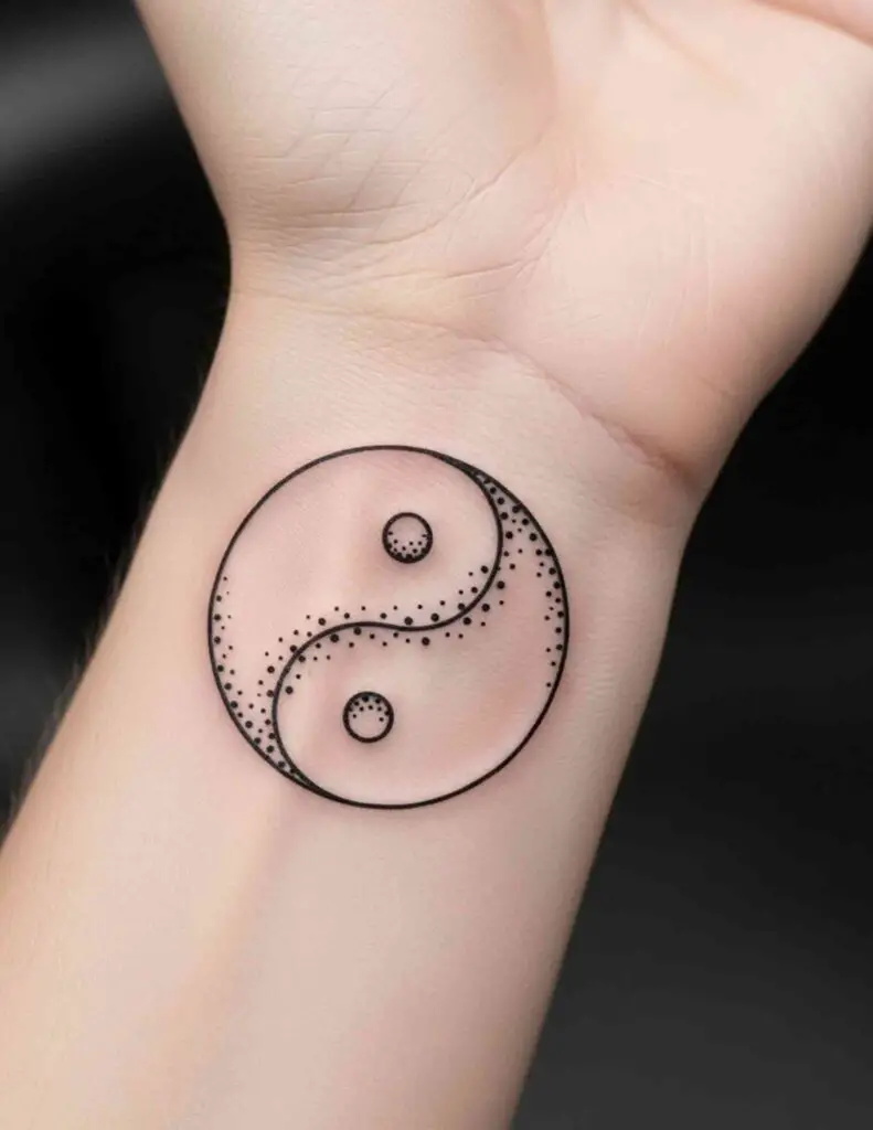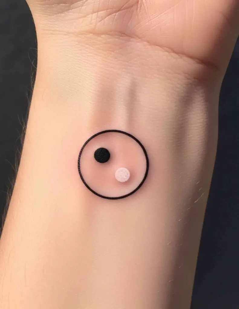 Just the two dots from the yin yang, removed from the containing circle. The black dot and the white dot placed close together on the skin. For people who know the symbol deeply enough to carry only its most essential element, this is among the most restrained and conceptually precise tattoo choices available.